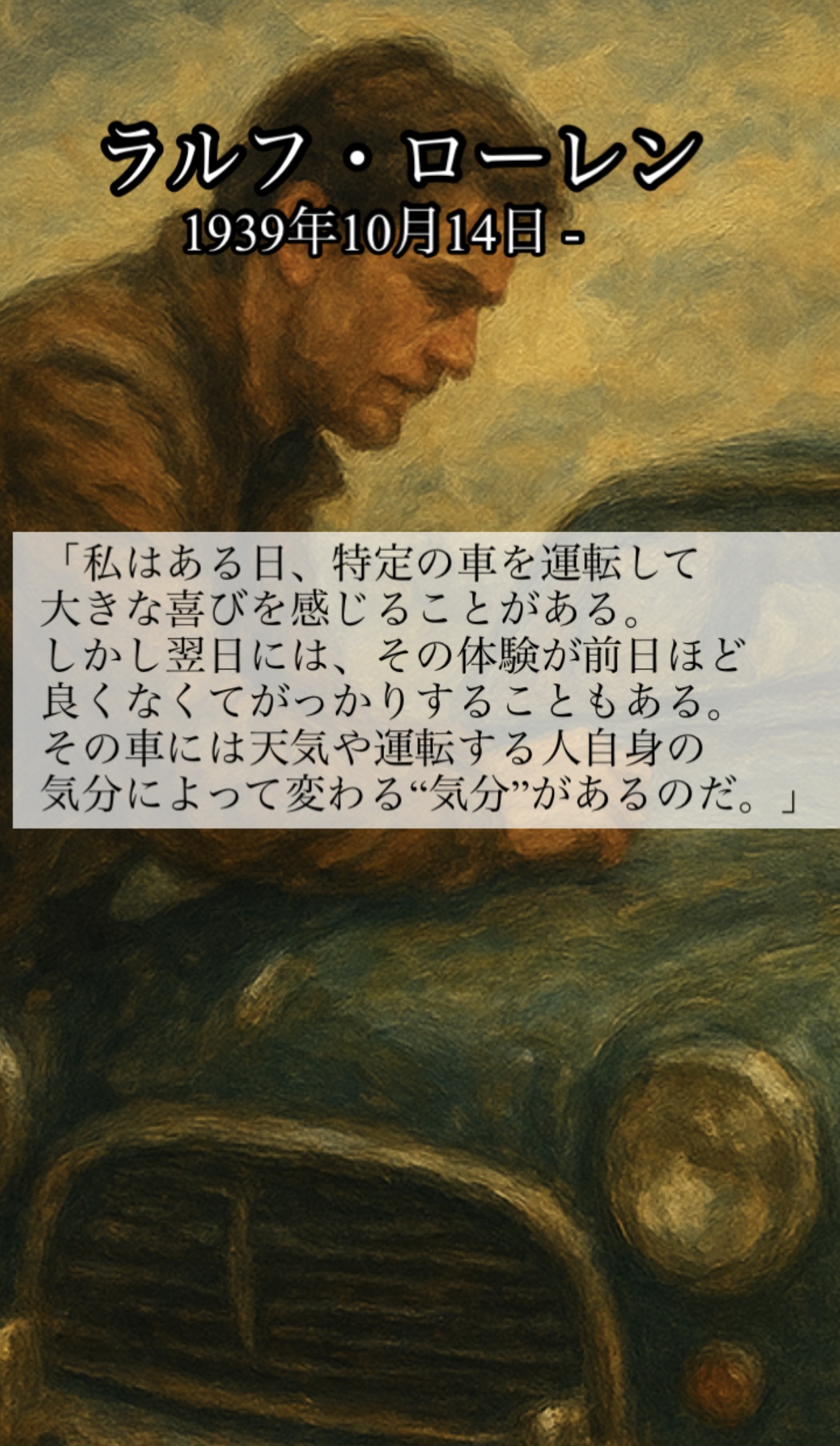 「私はある日、特定の車を運転して大きな喜びを感じることがある。しかし翌日には、その体験が前日ほど良くなくてがっかりすることもある。その車には天気や運転する人自身の気分によって変わる“気分”があるのだ。」