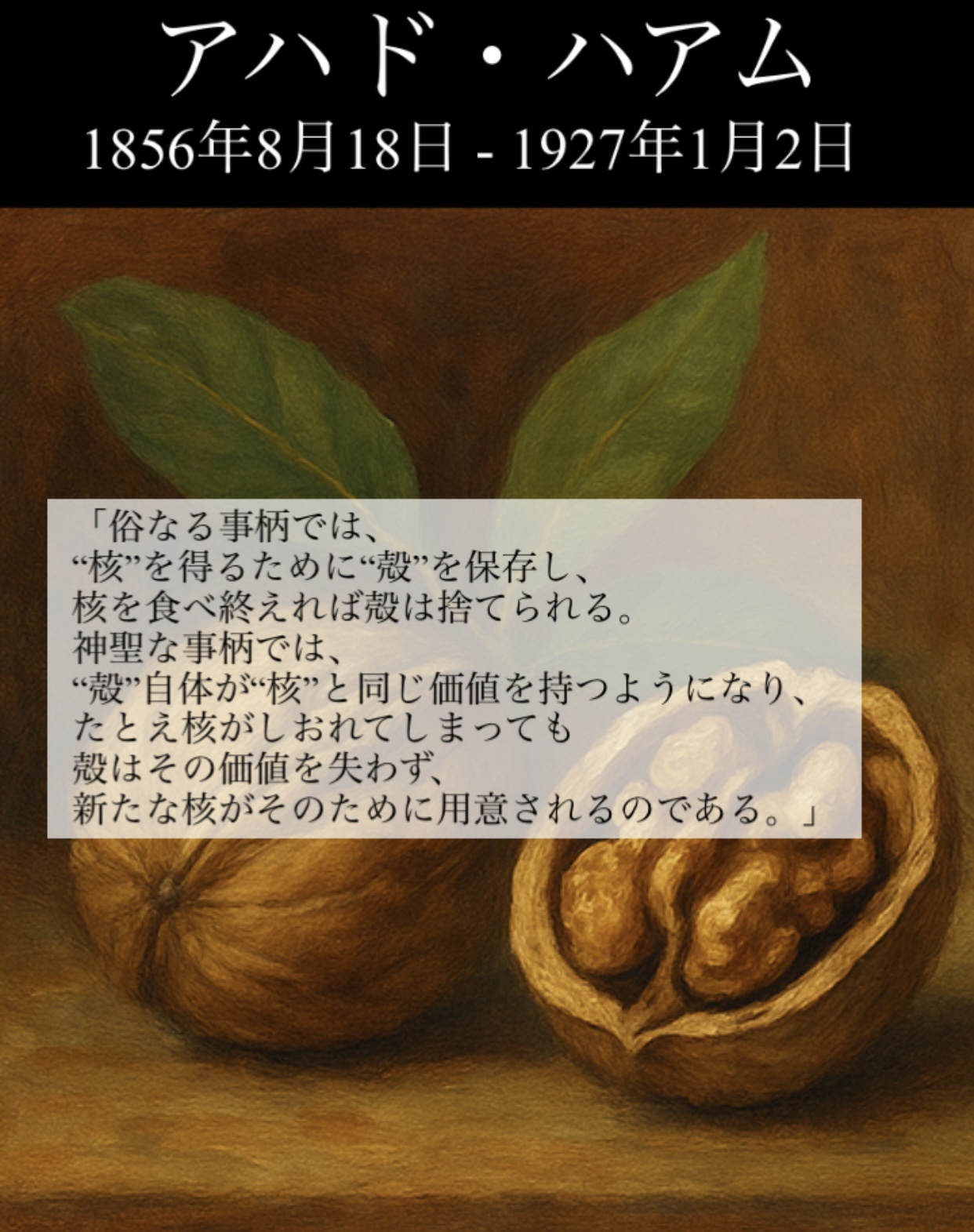彼は、ユダヤ人国家の建設は単なる政治的な独立ではなく、「ユダヤ文化の中心」を築くこと、つまり精神的・倫理的再生こそが重要だと説きました。