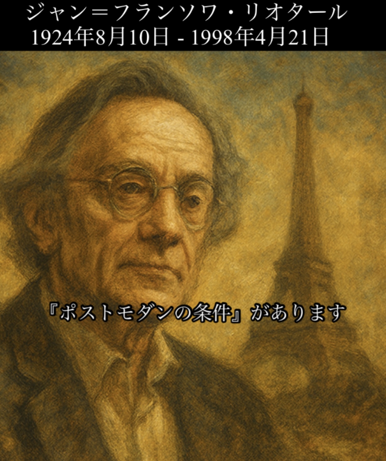 ジャン=フランソワ・リオタールは、ポストモダン思想を代表するフランスの哲学者であり、代表的な著書に『ポストモダンの条件』があります。彼は、現代社会における真理・文化・情報の意味を批判的に問い直しました。